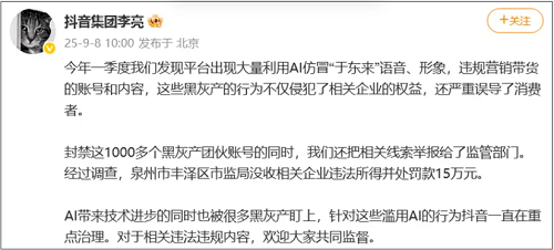 抖音集團(tuán)副總裁李亮針對AI亂象發(fā)文(G)