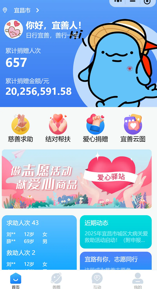 “宜善行”小程序截圖在湖北宜昌,為解決部分需要幫助的群體“求助無門”、有意獻(xiàn)愛心的人士“不知往哪捐”、公眾參與渠道相對(duì)單一等現(xiàn)實(shí)問題,9月5日“中華慈善日”當(dāng)天,由宜昌市慈善總會(huì)創(chuàng)新打造的“宜善行”小程序正式上線。據(jù)介紹,“宜善行”小程序運(yùn)用大數(shù)據(jù)、區(qū)塊鏈等現(xiàn)代信息技術(shù),進(jìn)行了頂層設(shè)計(jì)、技術(shù)應(yīng)用、服務(wù)模式、社會(huì)動(dòng)員四方面創(chuàng)新,構(gòu)建起“需求—資源—服務(wù)”閉環(huán)模式,為有需要的人提供求助、幫扶、募捐等一站式服務(wù),讓慈善服務(wù)更加貼近群眾需求。